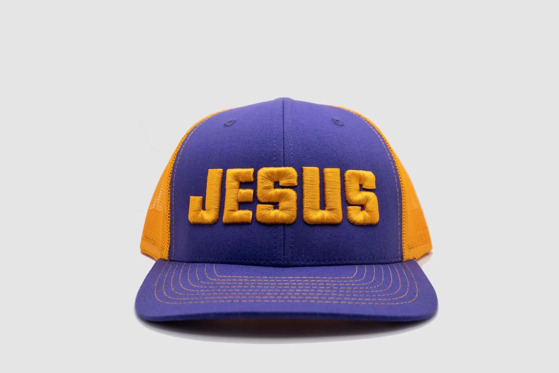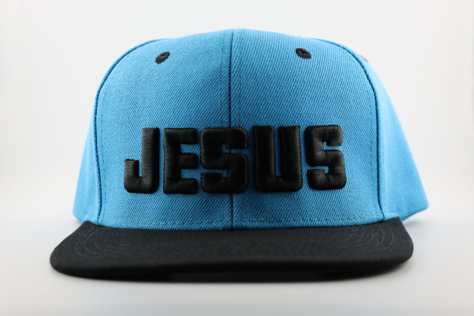 A unique snapback featuring bold "Jesus" embroidery for a modern, faith-based look.
